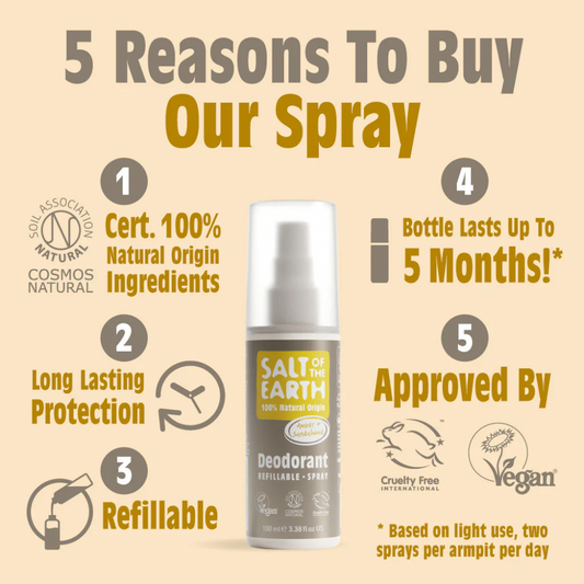 Amber & Sandalwood Deodorant Refillable Spray 100ml | Salt of the Earth