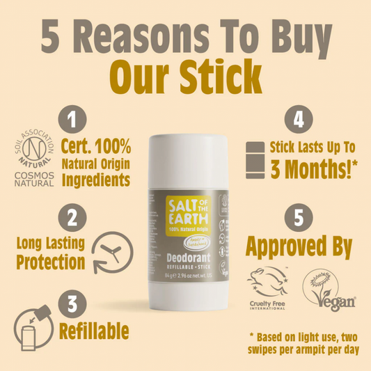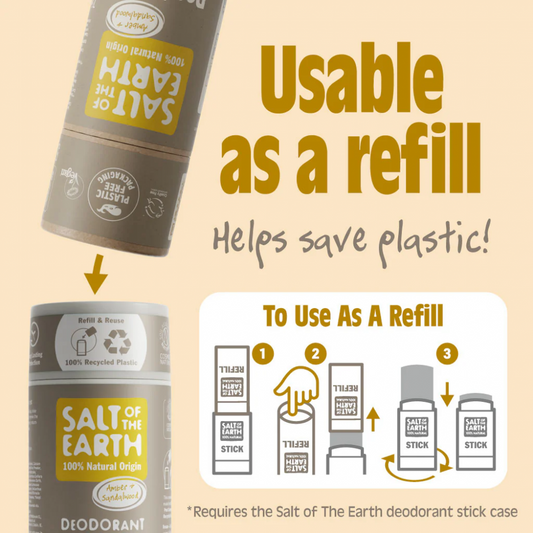 Amber & Sandalwood Deodorant Stick - Use or Refill 75g | Salt of the Earth
