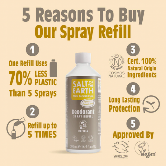 Amber & Sandalwood Deodorant Spray Refill 500ml | Salt of the Earth