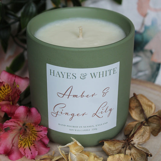 Our Amber & Ginger Lily collection is warm, oriental, and deeply calming. The richness of amber blends seamlessly with the exotic floral spice of ginger lily, creating a fragrance that is both soothing and sophisticated. Perfect for unwinding in the evening or adding a touch of luxury to your space, this scent wraps your home in comfort and quiet elegance. Hand-poured with care, these candles are designed to bring depth and tranquillity to everyday moments.