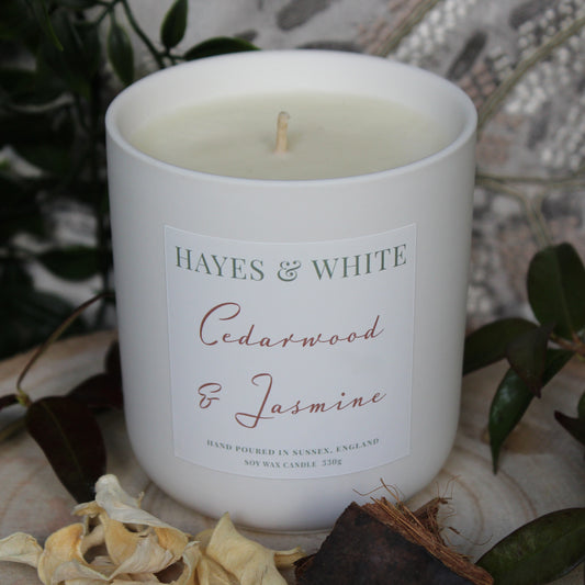 Our Cedarwood & Jasmine collection combines the grounding warmth of cedarwood with the soft elegance of jasmine. The result is a fragrance that feels both natural and refined, woodsy, calming, and gently floral. Perfect for creating a relaxing environment, it’s a scent that soothes the senses while adding a touch of quiet sophistication to your space. Each candle is hand-poured with care to bring balance, comfort, and beauty into your everyday rituals.