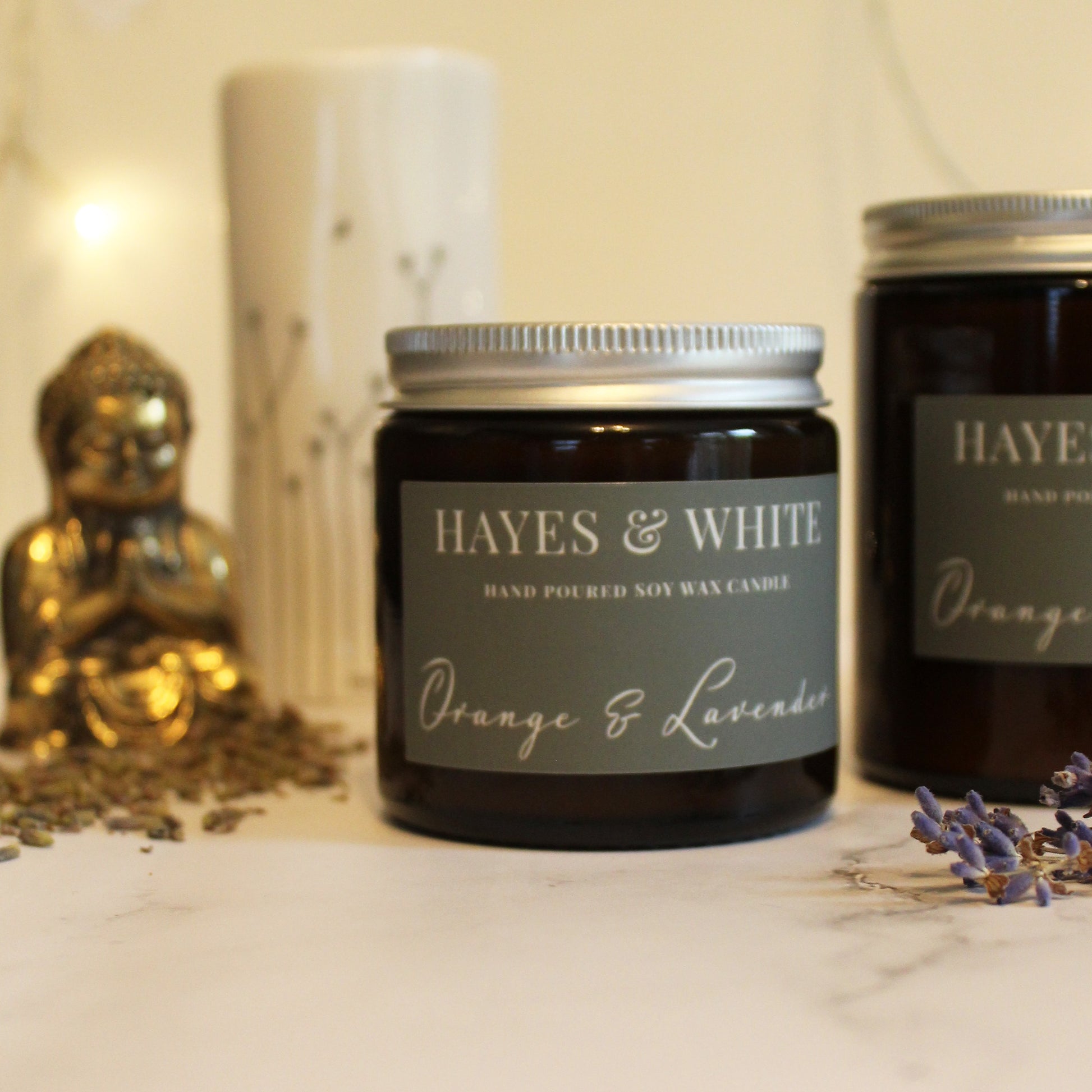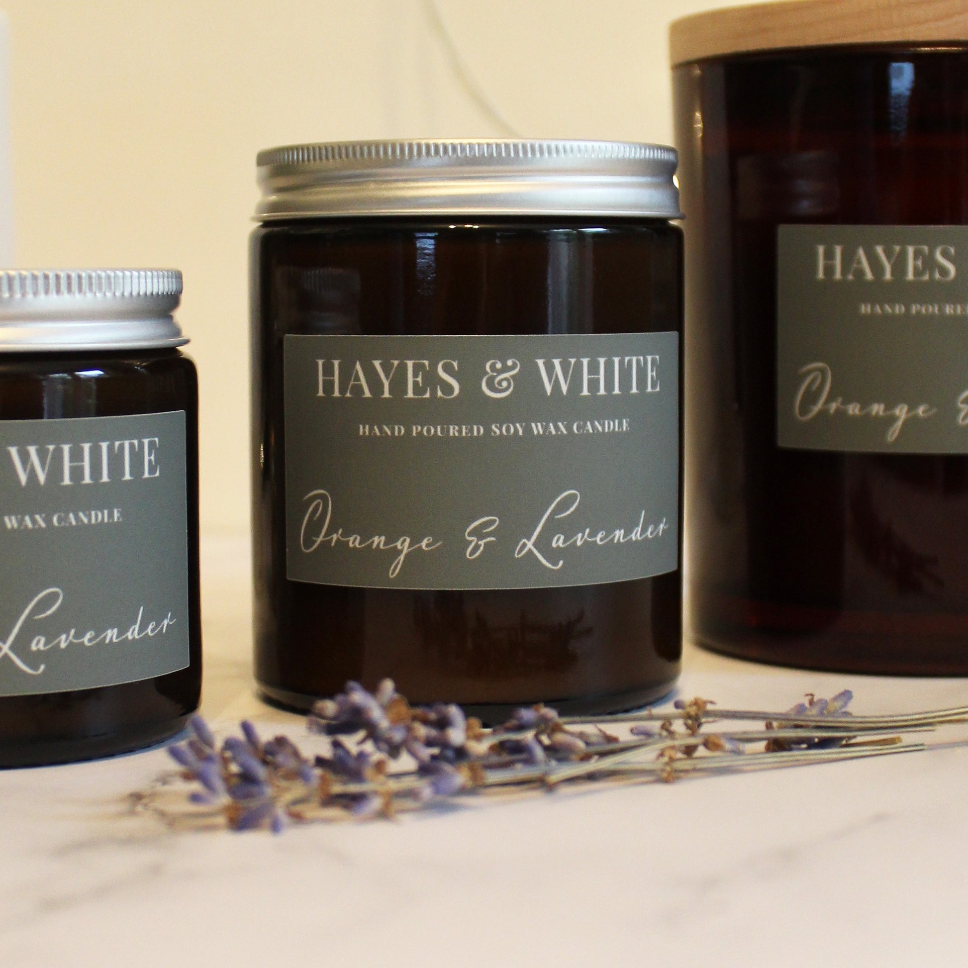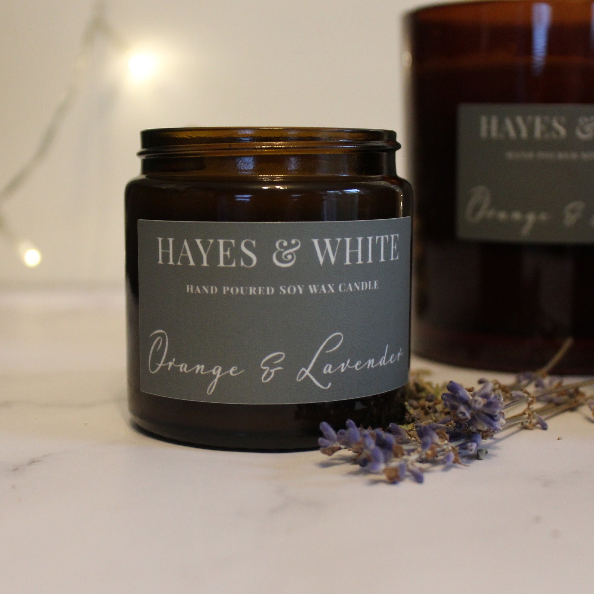 Handcrafted Soy Wax Candle. Orange and Lavender is packed with refreshing sweet citrus blended with lavender essential oil. A calming and uplifting scent.Â
