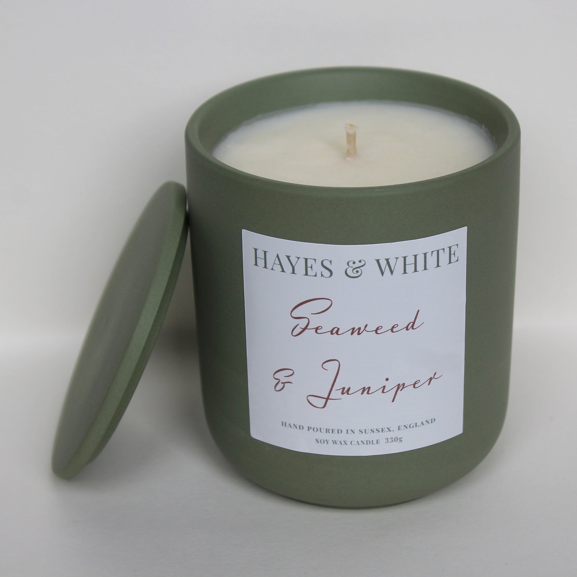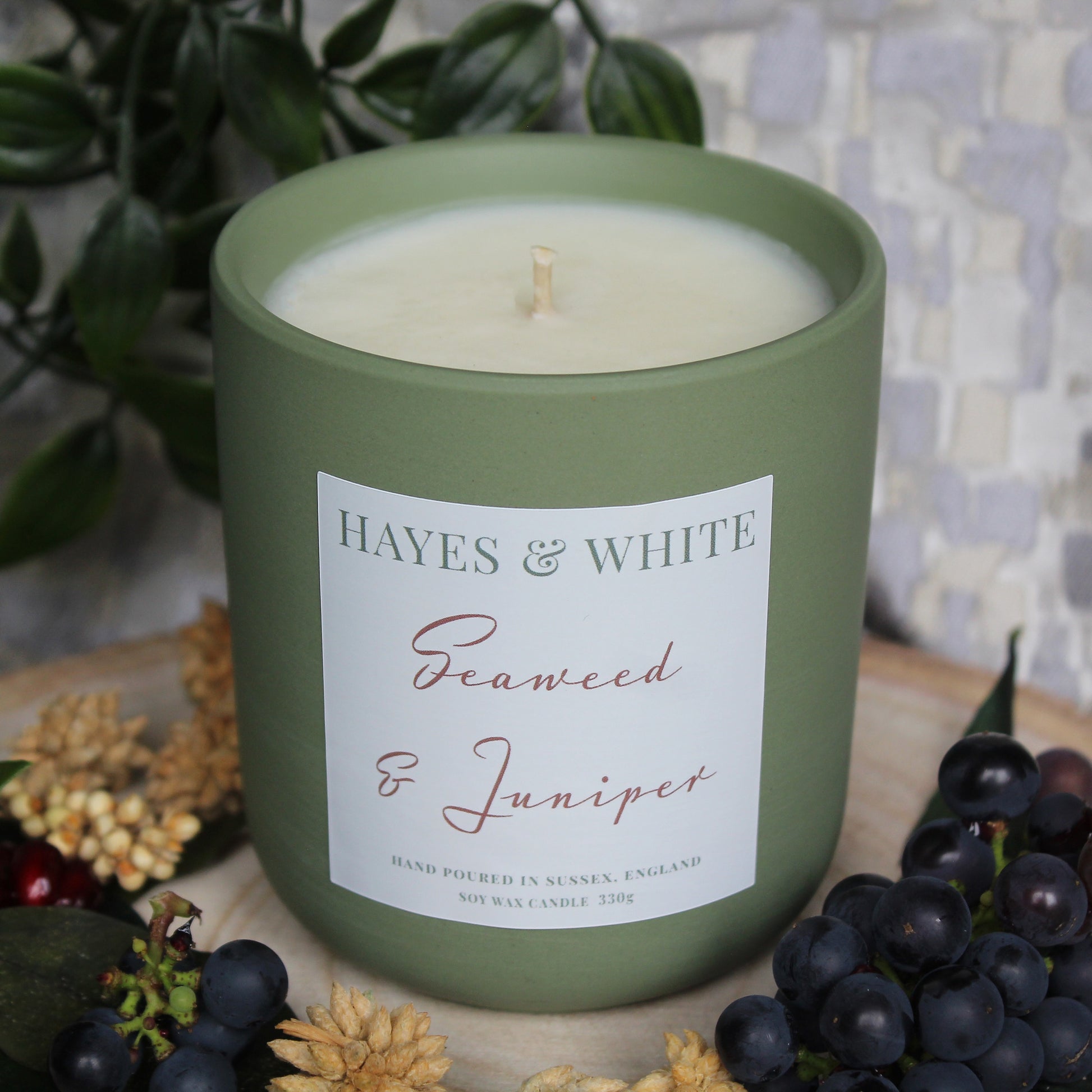 Brighten your space with the refreshing scent of Seaweed & Juniper. A delightful blend of white tea, lemon, mandarin, pear, and green tea, with a subtle floral background, this candle offers a sweet, clean, and fruity aroma that lifts any mood.